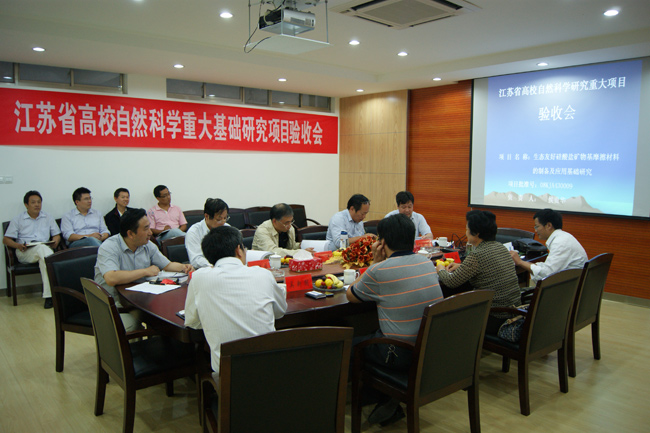 9月19日,江苏省教育厅组织专家对我室副主任侯贵华教授主持的省高校自然科学重大基础研究项目《生态友好硅酸盐矿物基摩擦材料的制备及应用基础研究》进行验收。验收委员会专家听取了项目研究报告,审阅了相关验收材料,并经质疑和认真讨论,认为项目组超额完成了项目合同规定的研究目标和任务,一致同意该项目验收通过。