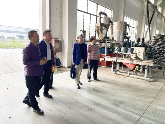 江苏瑞赛克环保设备科技股份有限公司董事长姜华忠等人对盐城工学院专家团队的到来表示热烈欢迎,随后,盐城工学院专家团队到公司的单机产品生产车间和废旧轮胎破碎回收生产线进行实地考察,并对产品生产和销售中存在的问题进行详细交流。针对破碎后的废旧轮胎产品用途单一和附加值较低的问题,盐城工学院专家团队希望通过对破碎后的废旧轮胎产品进行改性,进一步提升产品的性能指标,以用于高端场所的路面和墙体铺设,并探索其在固废资源化领域的其他用途。双方人员均希望加强合作,开展技术难题攻关,并借助政府的力量,拓宽产品的销售渠道和应用领域。